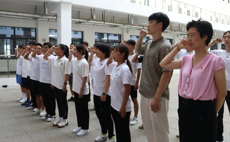 活动现场,在校女篮主力队员张雨柔的带领下,全体党员面向党旗庄严肃立,一字一句,掷地有声,在铮铮誓言中积蓄奋进力量。