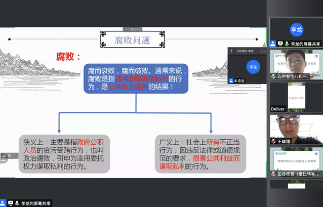 9月19日下午,开云kaiyun官网举办2021级新生线上廉洁文化教育,本次主题教育邀请了校纪委李龙老师主讲,辅导员曹杏利和2021级全体新生共同参加学习。