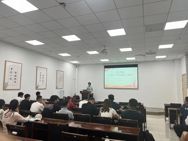 6月14日上午,开云kaiyun官网在体育馆b107会议室举行2024届毕业生党员专题党课。院党委副书记李琳主讲,院团委书记、2024届毕业生辅导员刘邦舜和全体毕业生党员参加了党课学习。