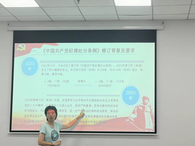 本次专题党课以《中国共产党纪律处分条例》(以下简称《条例》)为学习内容。李琳副书记从《条例》的修订背景及要求入手,为毕业生党员详细讲述了《条例》在修订过程中始终坚持的基调和释放的强烈信号。在带领毕业生党员通读《条例》全文的基础上,李琳副书记详细分析了新修订的《中国共产党纪律处分条例》的三个突出特点,第一点是以习近平新时代中国特色社会主义思想为指导,全面贯彻党的二十大精神;第二点是突出问题导向,坚决纠治形式主义、官僚主义等重点、难点问题;第三点是坚持与时俱进,在总结从严管党治党经验基础上完善纪律规范。她指出,《条例》在总结实践经验的基础上,与时俱进完善纪律规范,有利于充分发挥纪律建设标本兼治的利器作用,推动全面从严治党向纵深发展。