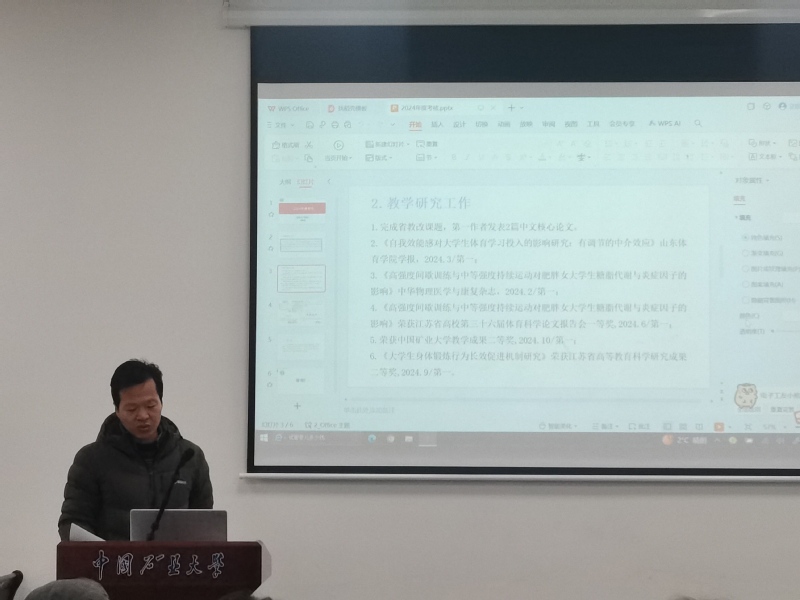 12月30日上午,开云kaiyun官网公体部组织专任教师在体育馆b107会议室开展本学期教学总结暨教学经验研讨会。学院副院长张大中、体育系全体专任教师参加了会议,会议由公体部主任周鹏主持。