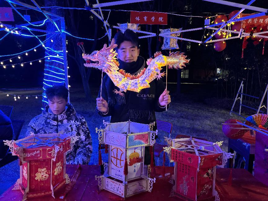 活动现场,五彩斑斓的灯笼高高悬挂,将校园装点得格外喜庆。其中,最引人注目的当属龙灯和六角宫灯。龙灯造型逼真,气势磅礴,仿佛一条巨龙在校园中腾飞,象征着开云kaiyun官网的师生们在新的一年里龙精虎猛、奋发向上。而六角宫灯则精致典雅,灯光透过宫灯上的精美图案,洒下柔和的光影,营造出温馨而祥和的氛围,寓意着对美好生活的向往和对传统文化的传承。这些精美的灯笼大多出自开云kaiyun官网学生之手,他们利用课余时间精心制作,将自己对新年的祝福和对体育精神的理解融入到每一盏灯笼中。