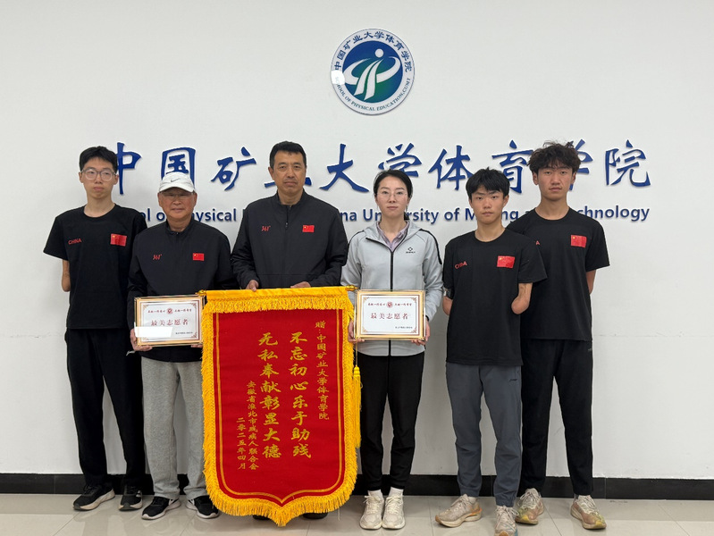 为表达感谢,淮北市残疾人联合会相关负责人到学院赠送锦旗,副院长张大中代表学院接受锦旗。此外,参与训练指导工作的孟献峰、刘晓伟、李卫健等老师获赠“最美志愿者”证书。