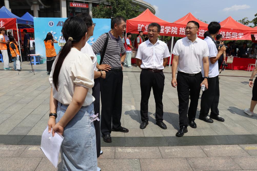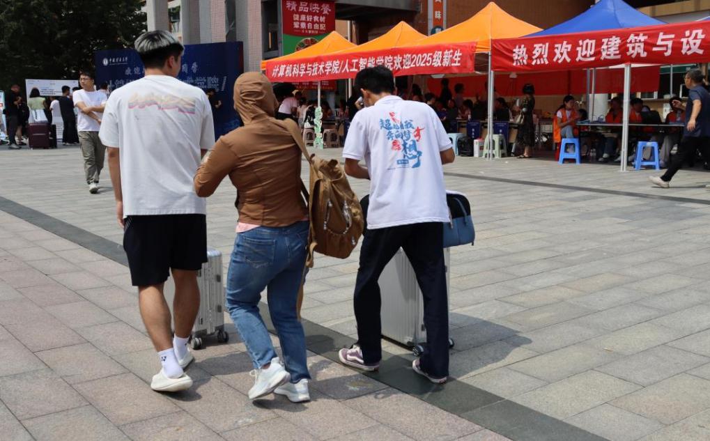 迎新期间,学校、学院领导亲临现场,亲切慰问一线工作人员与志愿者,细致询问报到流程及新生适应情况。各工作组协同作战:信息审核组一丝不苟核验材料,院服发放组细致递送专属院服;摄影志愿者定格新生初遇矿大的珍贵画面;志愿者们冒雨穿梭校园,协助搬运行李、指引路线、解答疑问,全力帮助新生熟悉环境。针对极端天气,学院及时调整物资供应,备足红牛、矿泉水、香蕉、雪糕等消暑补给,全力保障工作人员与志愿者的健康与精力。