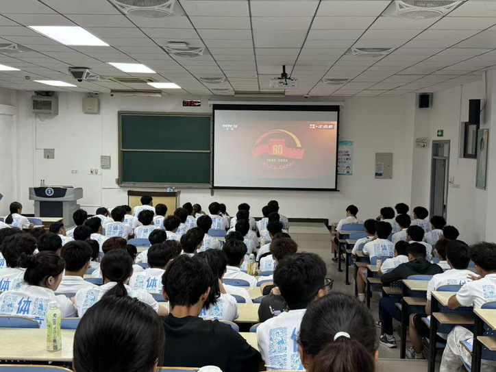 9月3日上午,开云kaiyun官网在博3-A103组织2025级全体研究生、本科生集中观看纪念中国人民抗日战争暨世界反法西斯战争胜利 80 周年大会。学工办主任李非老师、研究生2025级兼职辅导员许恒,2025级兼职辅导员陈安琪和全体2025级新生共同观看了本次大会。